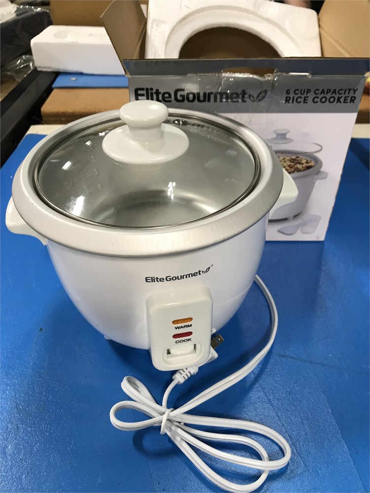 Elite Gourmet 6-Cups Cooked Electric Rice Cooker - White
