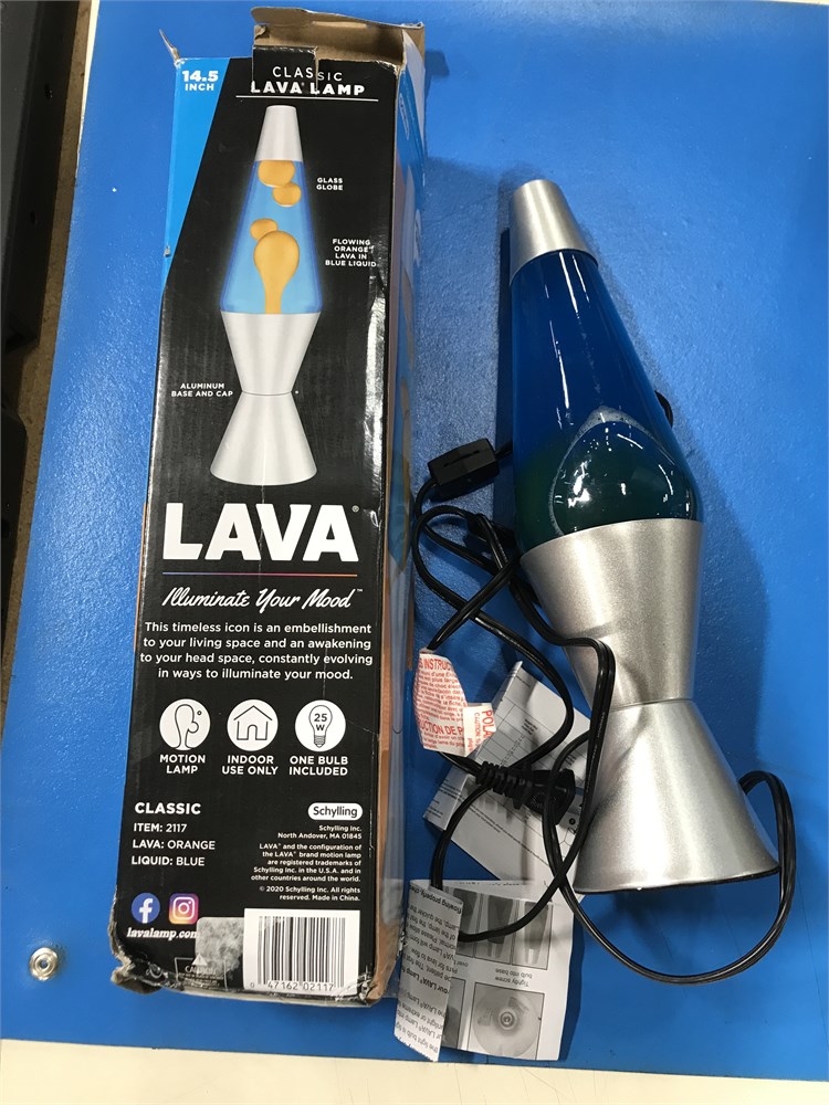 Lava The Original 2117 14.5" Silver Base Lamp with Orange Wax in Blue Liquid