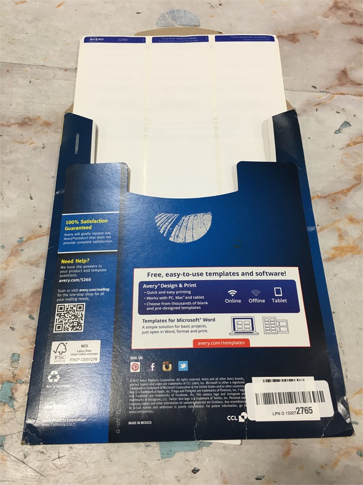 Avery Printable Address Labels, 1" x 2-5/8", White, 750 Blank Mailing Labels