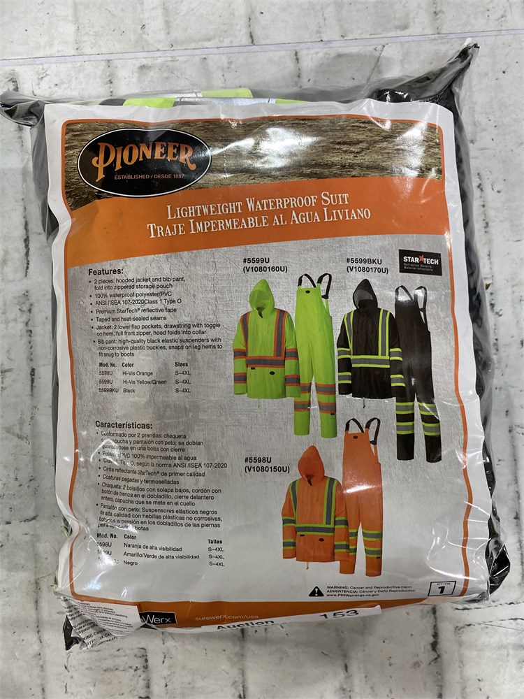 Pioneer Waterproof Lightweight Safety Rain Suit, Black, Large