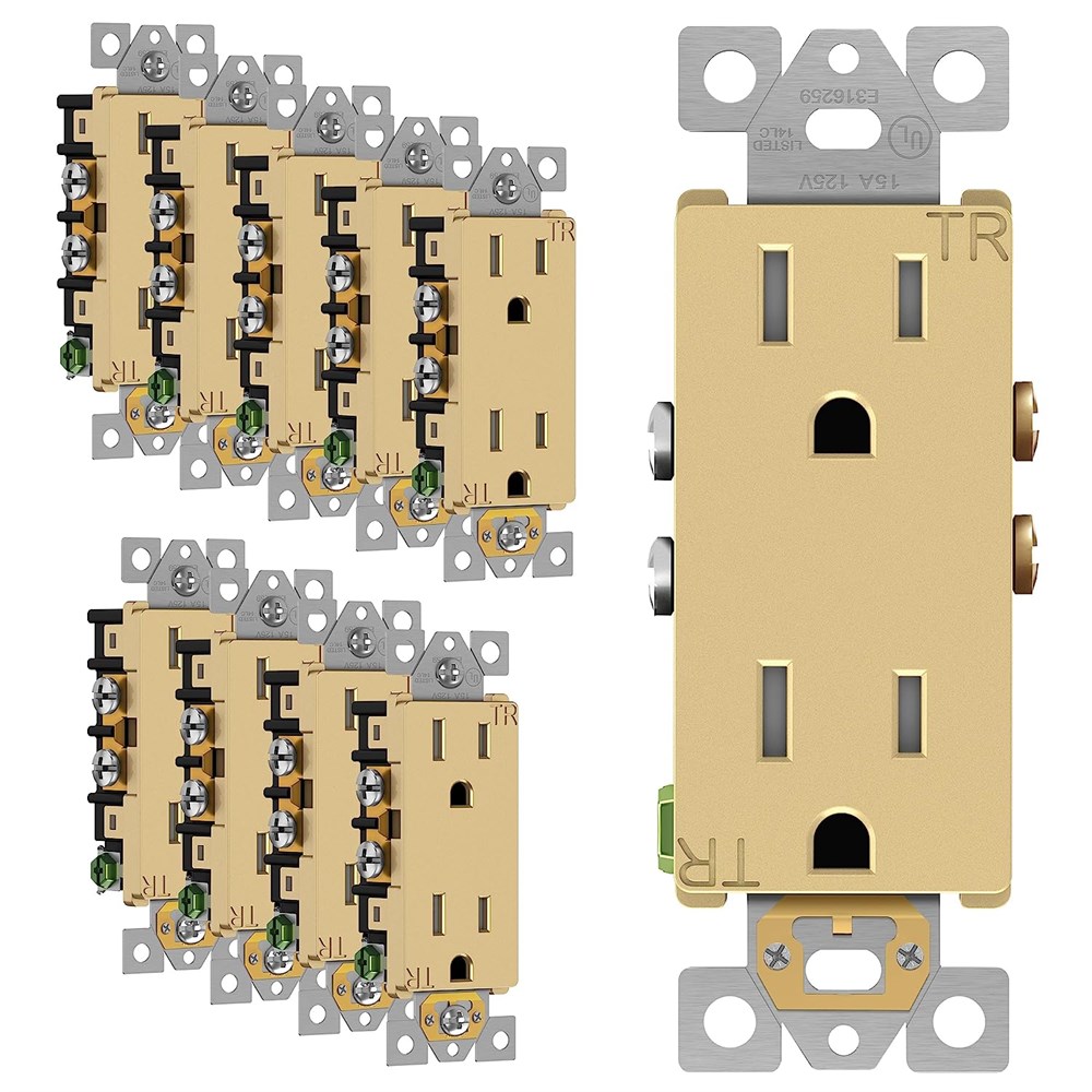 ENERLITES Decorator Receptacle Outlet Child Safe Tamper-Resistant Gold(10 Pack)