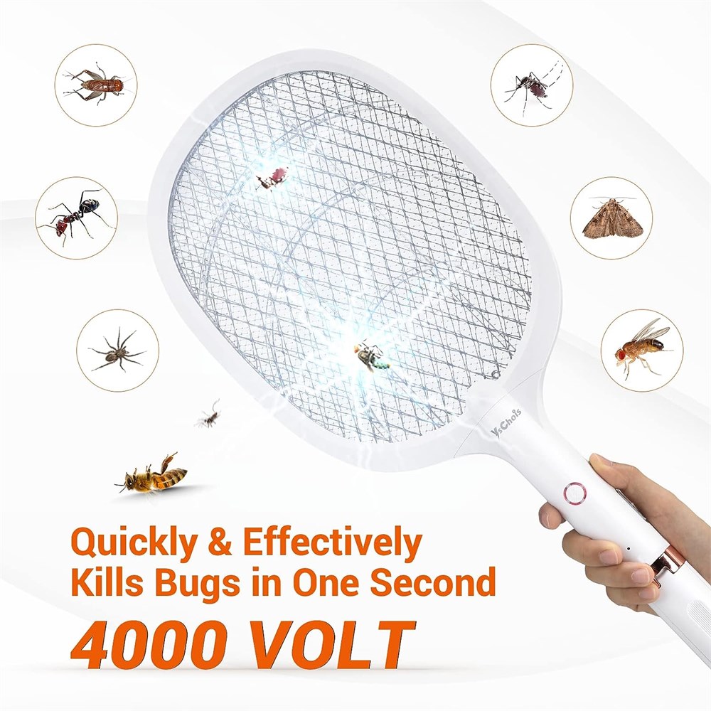 YsChois Electric Fly Swatter Racket, Rechargeable, 4000 Volt, Single