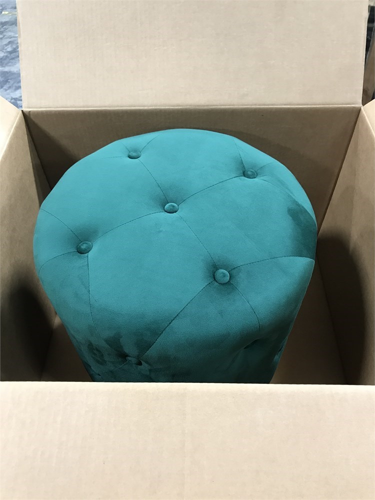Adeco Round Velvet Green Ottoman - Green w/ Gold Base