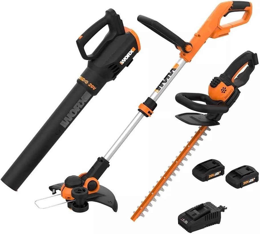 Worx 20V Power Share 3PC Cordless Combo Kit (Blower, Trimmer, & Hedge Trimmer)