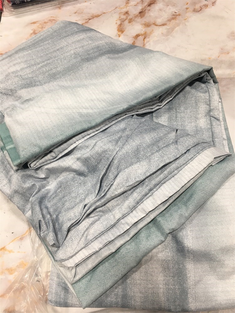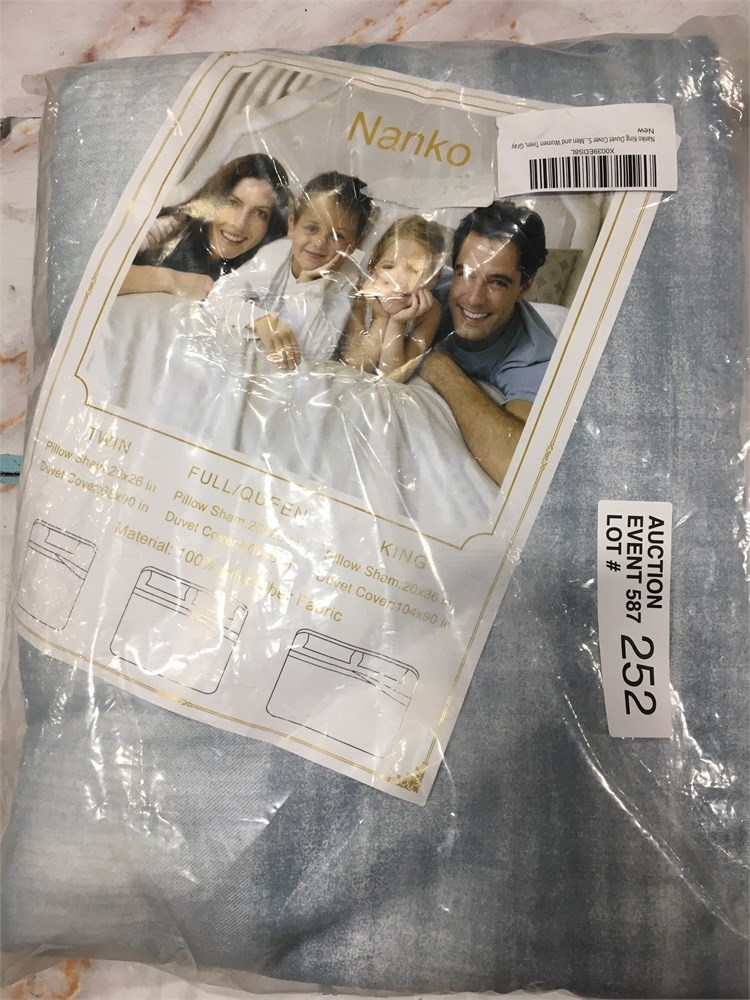 Nanko King Duvet Cover Set, Grey and Blue Teal Striped Print Pattern
