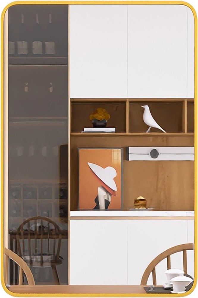 Rectangular Round Edge Bathroom Mirror, Gold, 22" x 30"
