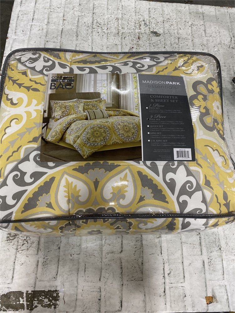 Madison Park Essentials 9 Piece Bed in a Bag, Medallion Damask Design, Yellow