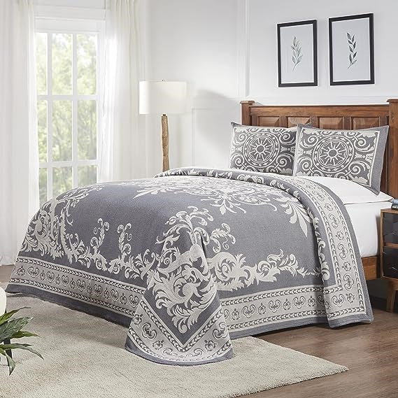SUPERIOR Cotton Blend 3-Piece Bedspread Set, King, Denim Blue