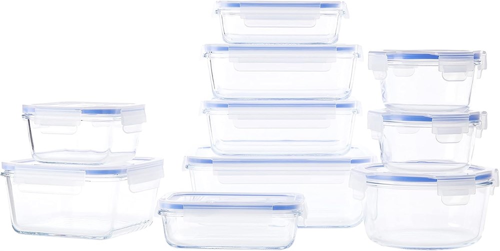 Amazon Basics 20-Piece Glass Food Storage Containers, 10 Count of Bases and Lid