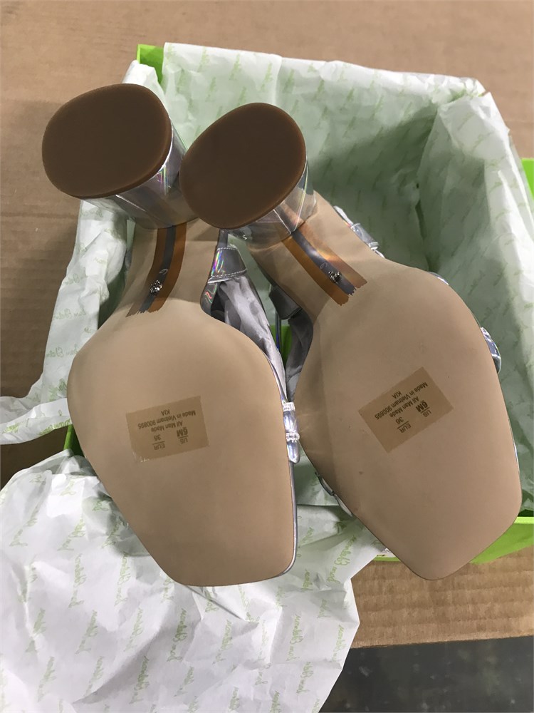 Sam Edelman Women's Kia Heeled Sandal, Liquid Soft Silver, 6