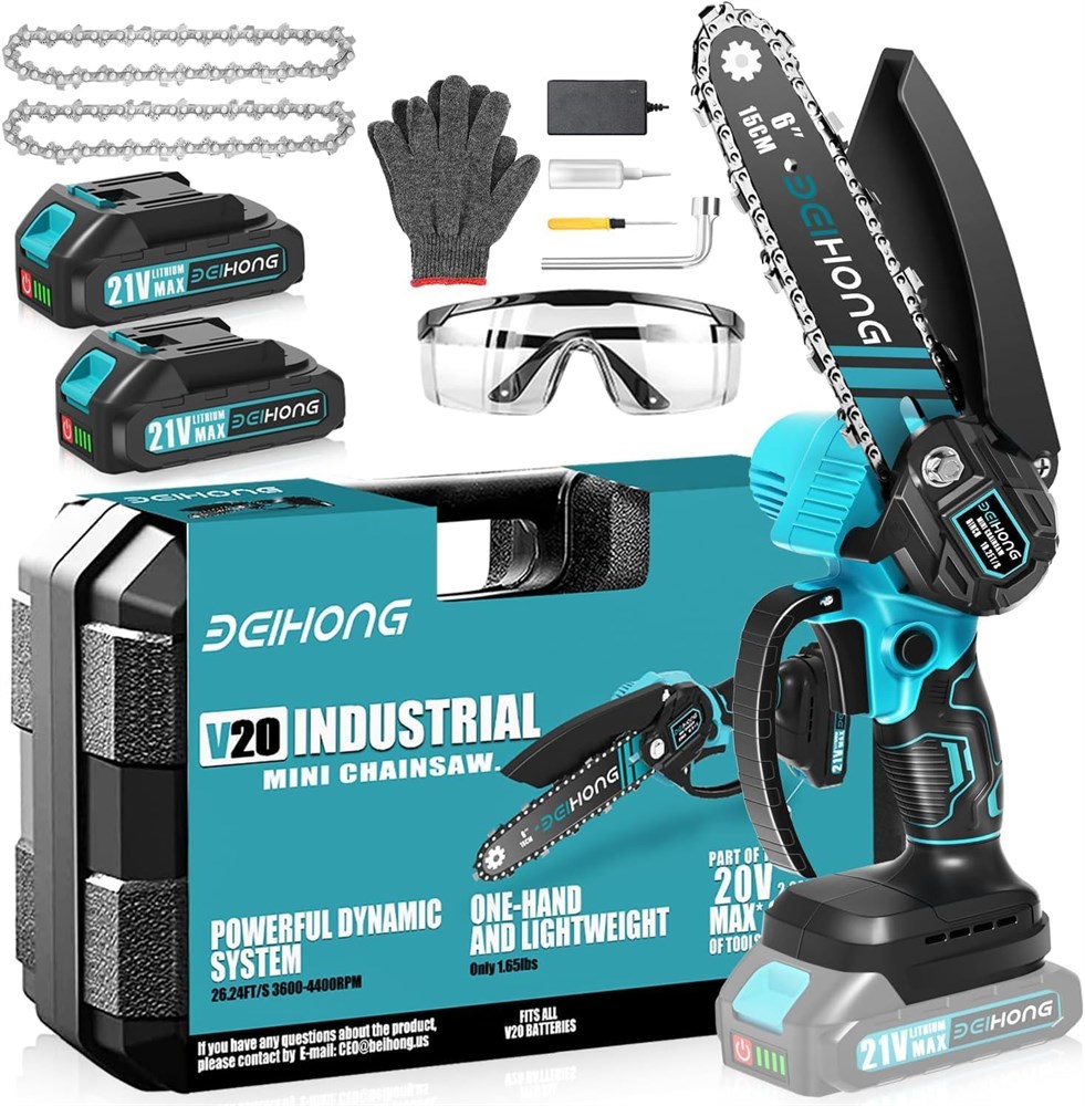 BEI & HONG Mini Chainsaw 6-Inch with 2 Batteries, Cordless Power Chain Saws
