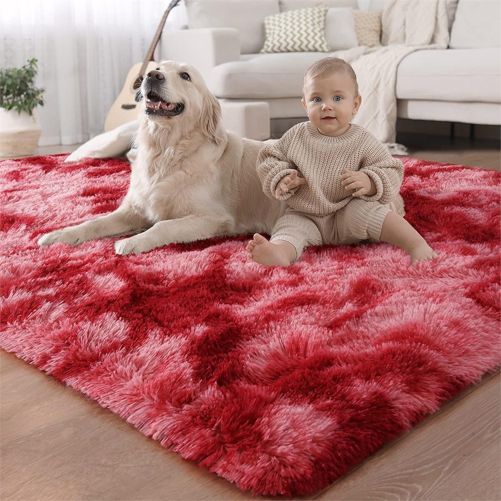 LOCHAS Soft Shag Tie-Dye Area Rug, Red, 5x8 Feet