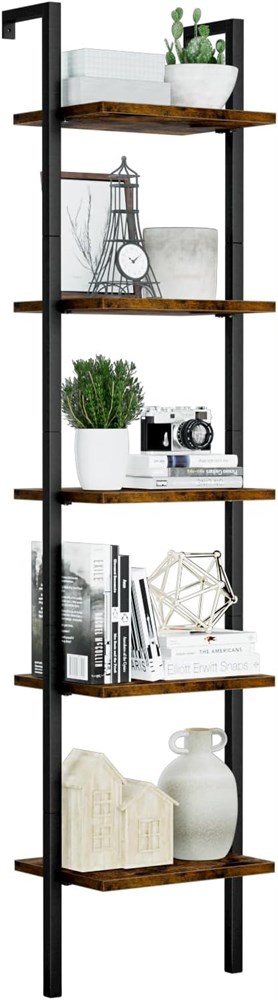 NUMENN 5 Tier Book Shelf, Industrial Ladder Shelf, Open Space Wall Mount, Brown