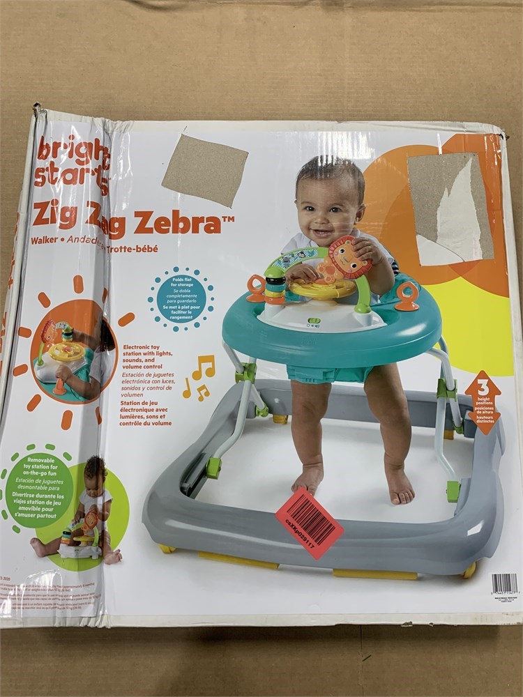 Bright Starts Zig Zag Zebra Walker with Easy Fold Frame for Storage