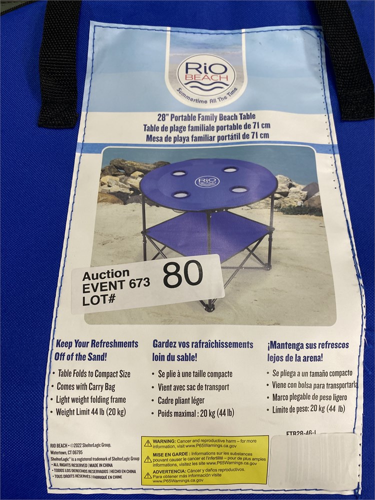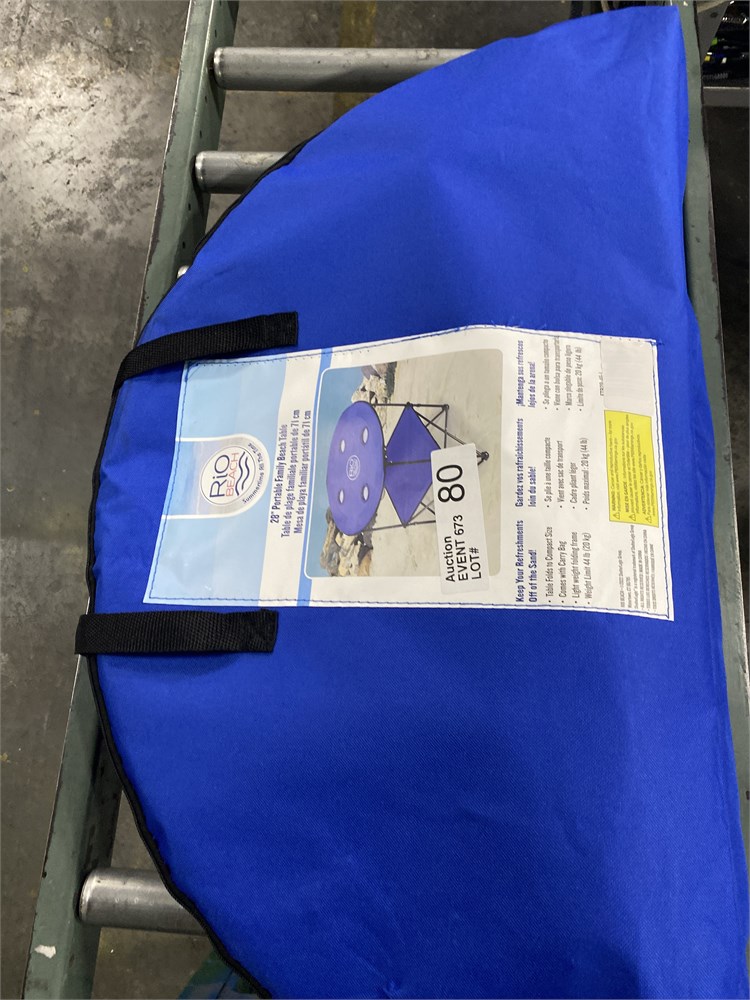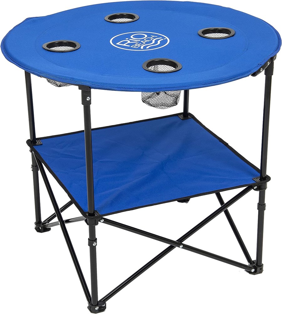Rio Brands 28" Portable Folding Beach Table with Cupholders, Blue