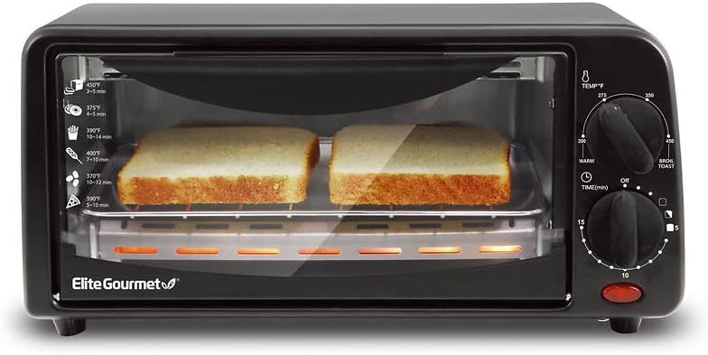 Elite Gourmet 2-Slice Toaster Oven Plastic,Aluminum,Glass Black