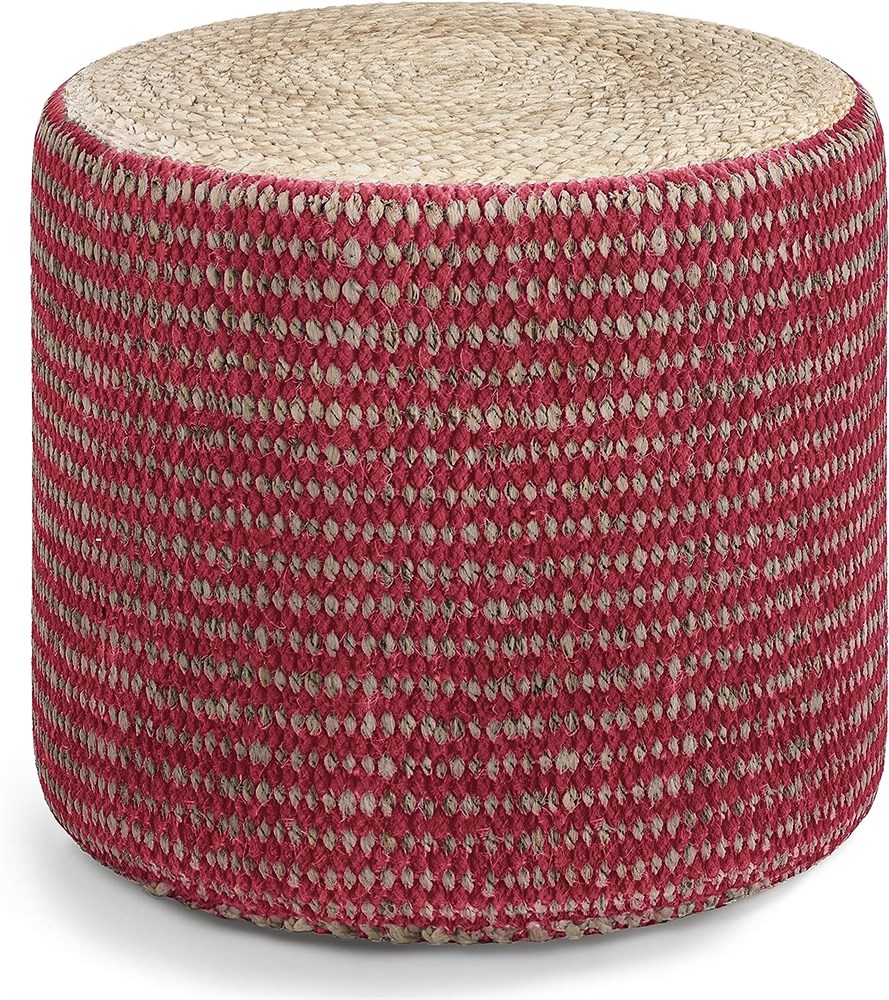 SIMPLIHOME Larissa Round Pouf, Footstool, Upholstered in Hand Braided Jute