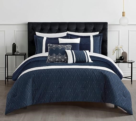 Chic Home Macie 6 Piece Comforter Set, Pillows Shams Included, King, Navy