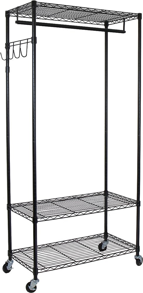Oceanstar Heavy Duty Rolling Storage Garment Rack Adjustable Shelves Black